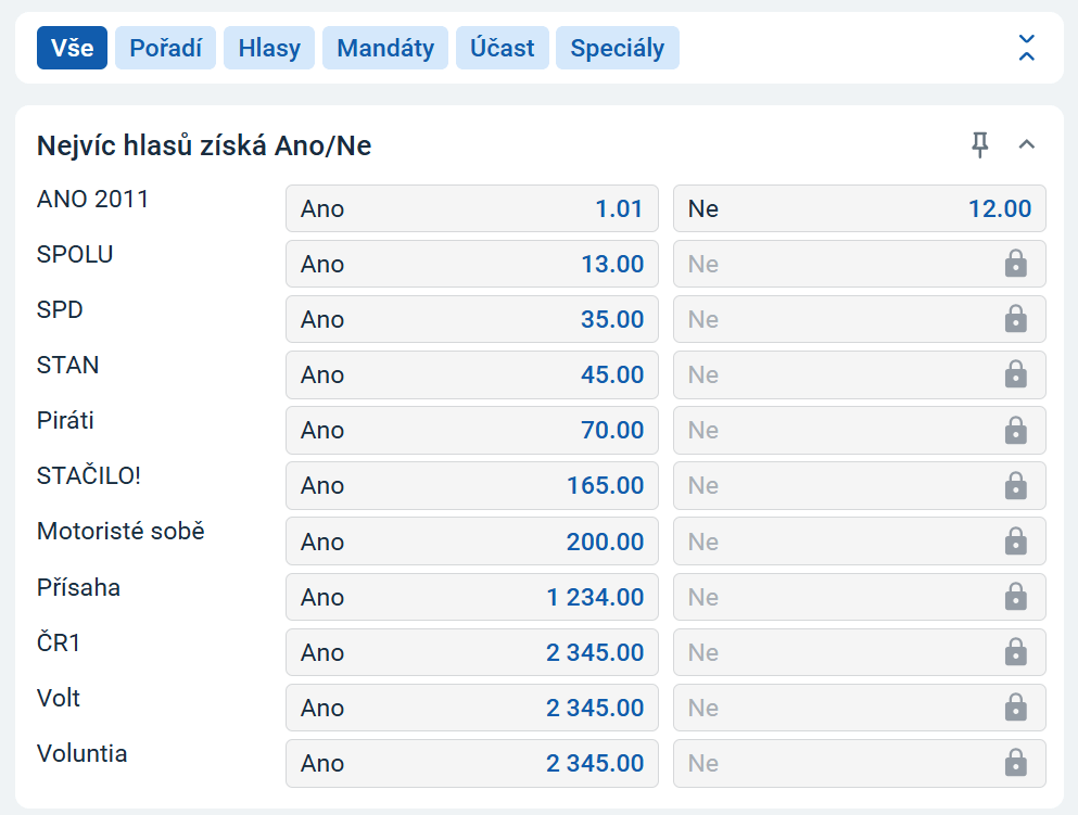 - Počet hlasů v procentech (lze vybrat z mnoha variant)