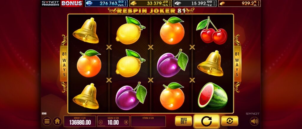 Výherní automat Respin Joker 81 z dílny Synot Games se řadí ke slotům, které nikdy neztrácejí popularitu. Navazuje na oblíbený titul Respin Joker a i když zůstává věrný tradičnímu vzhledu ovocných automatů, přináší hned několik moderních vylepšení. Zejména zaujmou čtyři válce namísto tří a mechanika 81 výherních možností, která z něj činí zástupce takzvaných „automatů 81“.