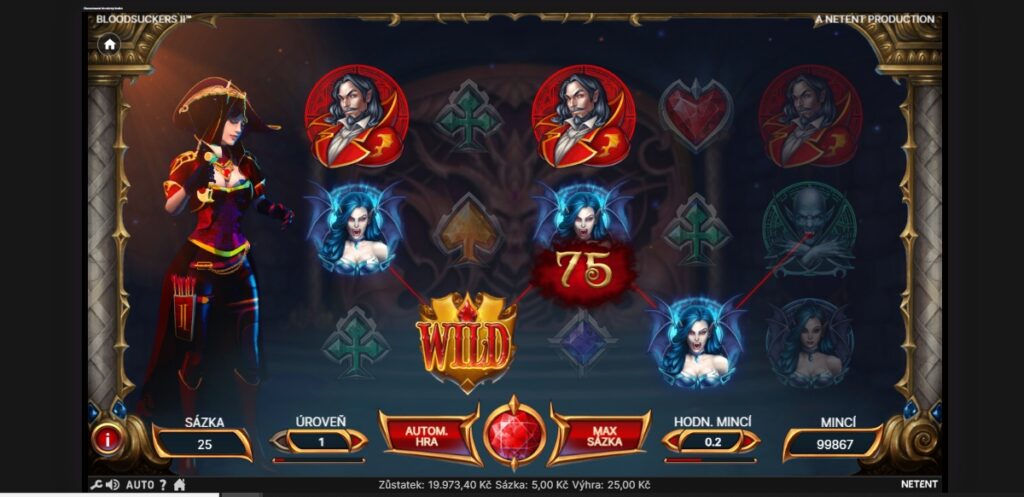- Cena: Výše sázek se pohybuje mezi 5–500 Kč, u Blood Suckers II v rozhraní 2,5–500 Kč