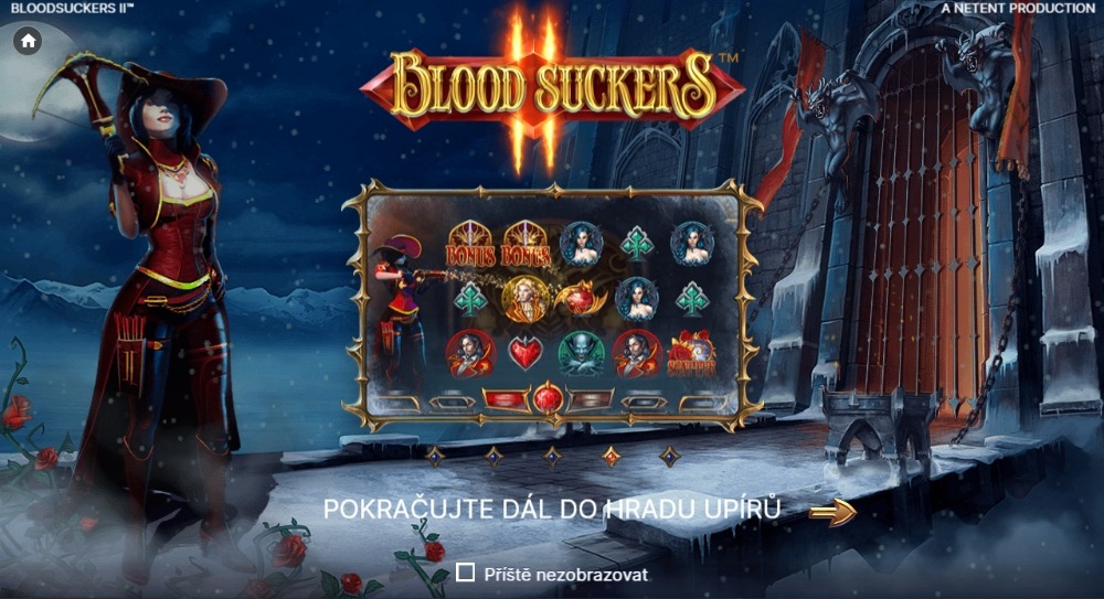 Výherní automat Blood Suckers odpovídá svému názvu a přináší strašidelnou hru s tematikou upírů, starobylého hradu a temnou oblohou, ze které sněží. Zatímco jednička měla spíše kreslený design, dvojka se přesunula do 3D spektra. Oba automaty jsou nicméně pořád dostatečně děsivé.