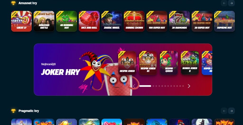 • pestrý výběr her od různých vývojářů – např. NetEnt, NeoGames, Synot, Tech4Bet, Thunderkick, iSoftBet, Kajot, Apollo či e-gaming